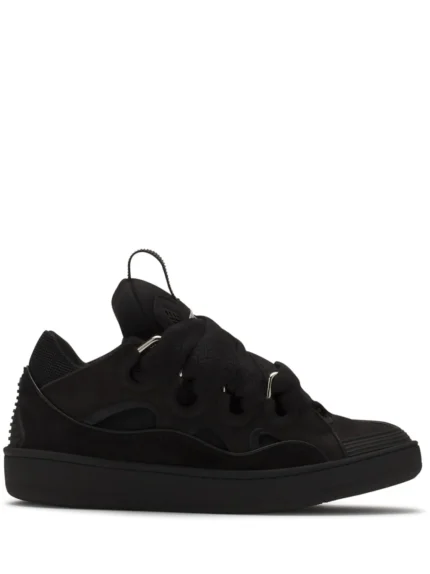The Lanvin Curb leather sneakers draws inspiration from the 90s, showcasing a bold design and larger-than-life proportions. Crafted with nappa