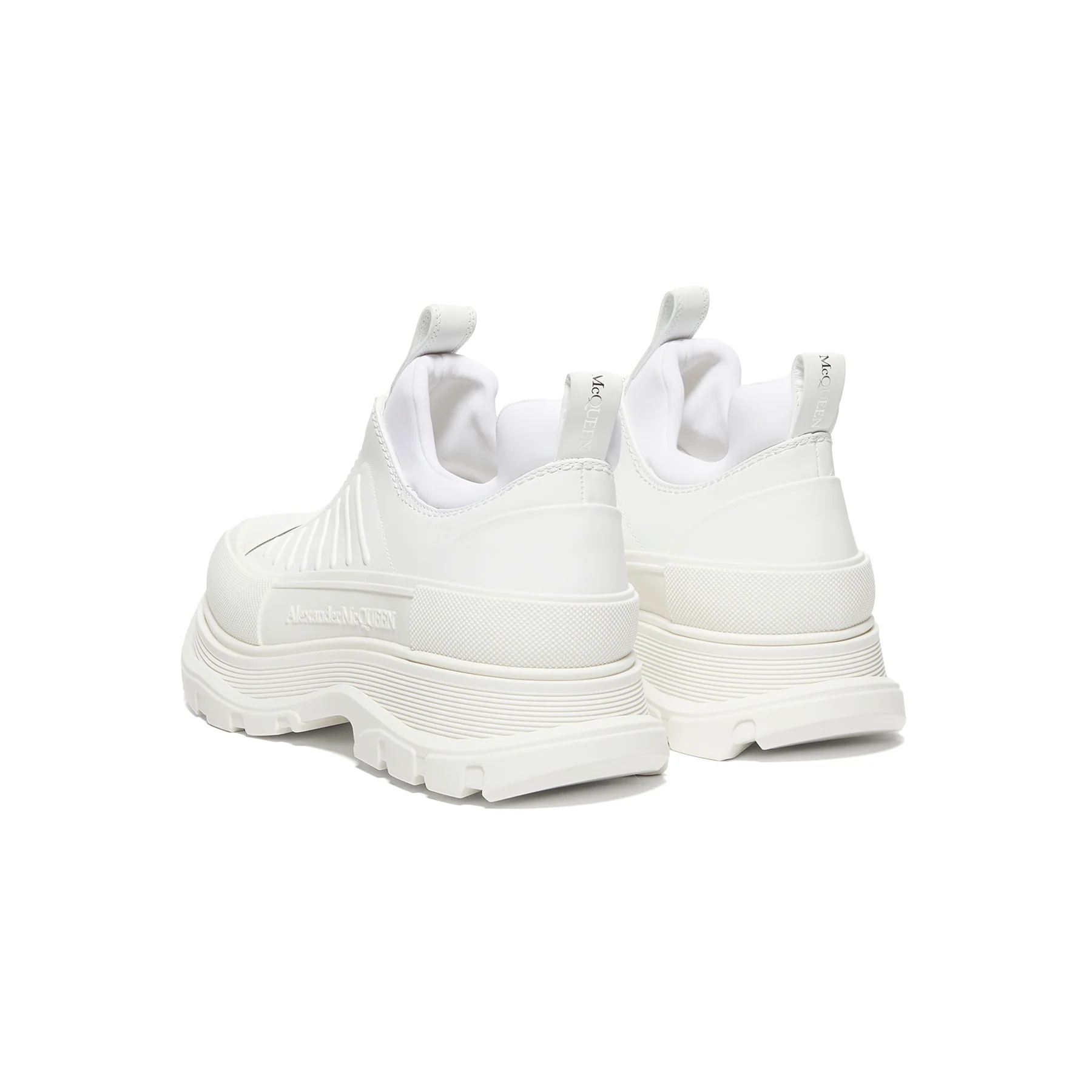 The Alexander McQueen Tread Slick Zip Up in ‘White’ embodies a fusion of high fashion and streetwear culture. Known for pushing boundaries, McQueen’s design philosophy shines through in this sneaker, which effortlessly marries elegance with an edgy vibe. Originally crafted for those who dare to stand out, this sneaker has become a staple for both the runway and the urban landscape. Crafted from premium leather, the upper features a sleek silhouette with subtle paneling that adds depth without overwhelming the minimalist aesthetic. The zip closure not only enhances the modern look but also provides practicality, making it easy to slip on and off. The cushioned outsole is designed for durability and traction, ensuring that you can navigate various terrains with confidence