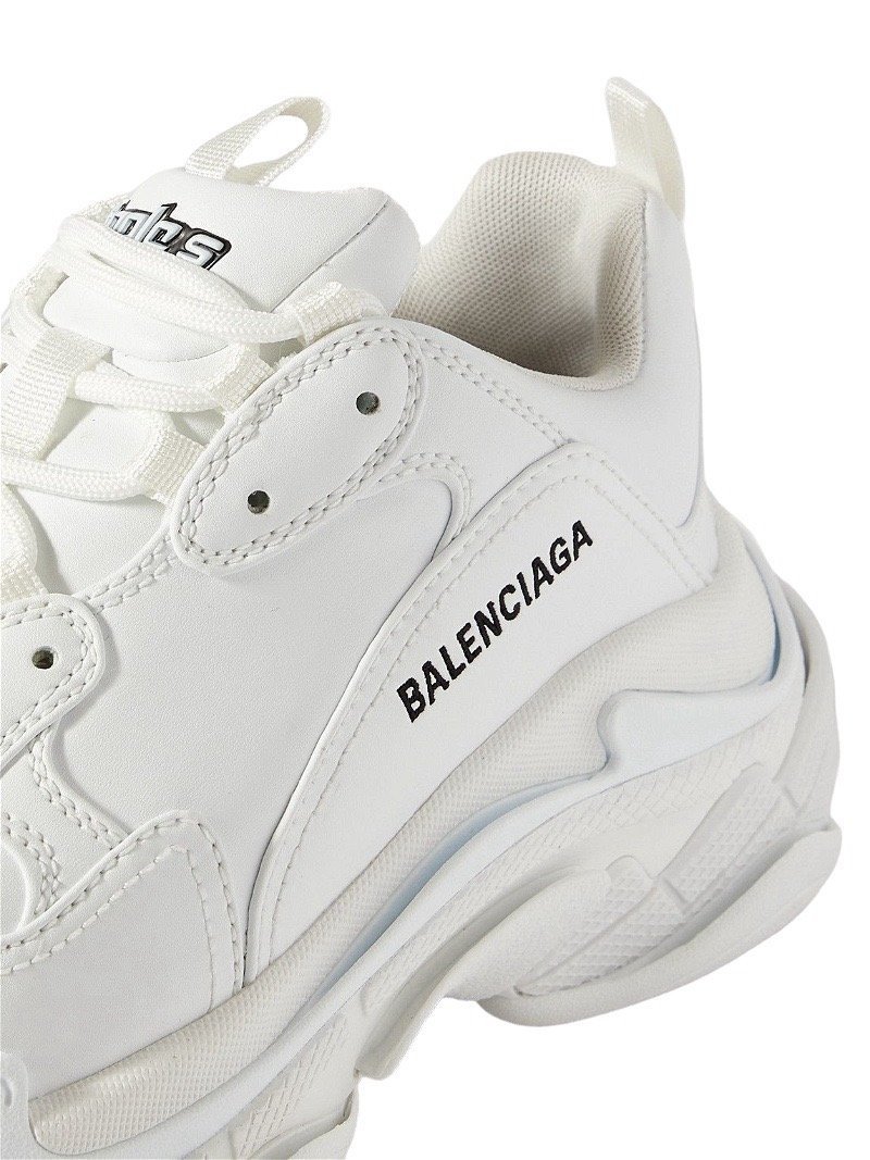 Balenciaga’s first release of ‘Triple S’ sneakers sold out within minutes, and each new colourway since has been met with the same reaction from fans. Set on triple-stacked soles moulded from running, basketball and track styles, this white pair is made from smooth faux leather. They have comfortably padded collars and are embroidered with the size on the toe.