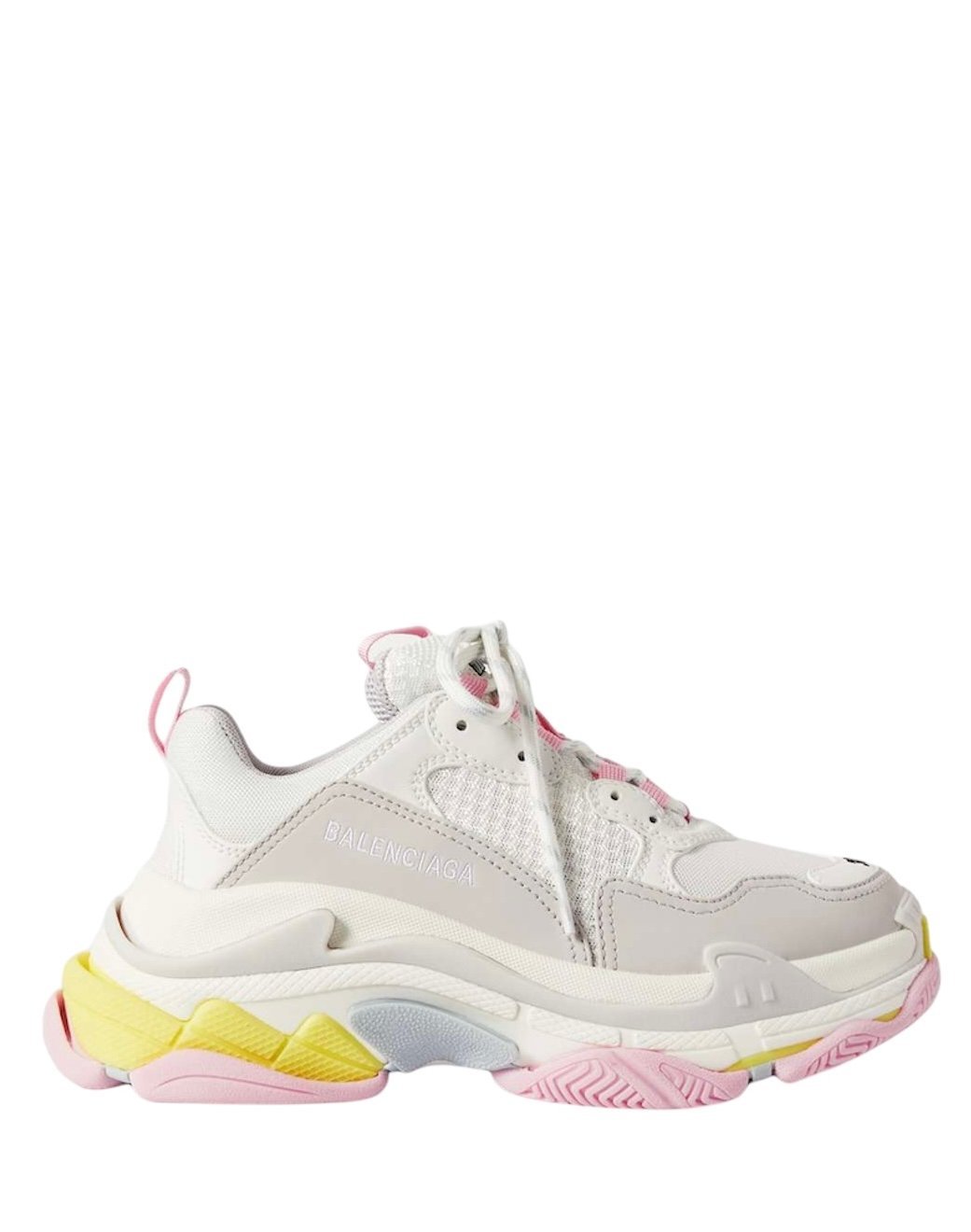 Every time Balenciaga releases the ‘Triple S’ sneakers in a new colorway, it sells out fast – so don’t leave this futuristic pair in your wish list for long. Made with thick, sculpted rubber soles and white faux leather and mesh uppers, they have striped laces and, of course, the sans serif logo on the sides.