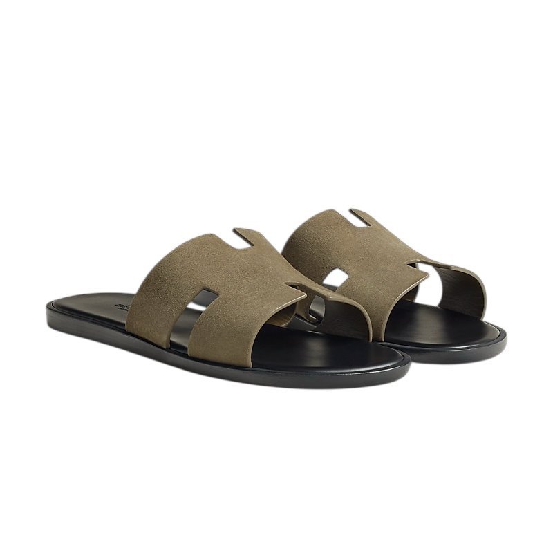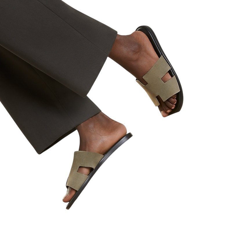 Sandal in suede goatskin with iconic “H” cut-out detail and straight-cut edges.