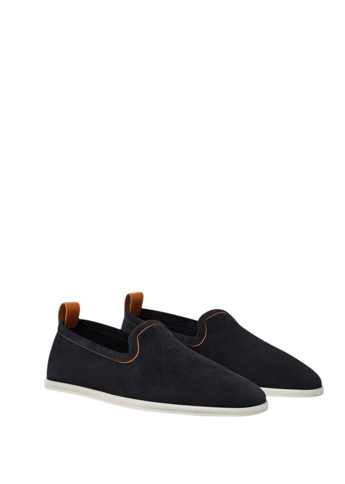 Inspired by classic slipper loafers, this Loro Piana style combines the luxury of artisanal craftsmanship with the versatility of iconic footwear. Loro Piana created these lightweight, flexible suede loafers by selecting the most prized part of the hide and crafting it to achieve the ideal softness and thickness. Thanks to natural-colored leather collapsible heels and slightly elongated toes, they evoke the iconic Loro Piana Summer Walk style.