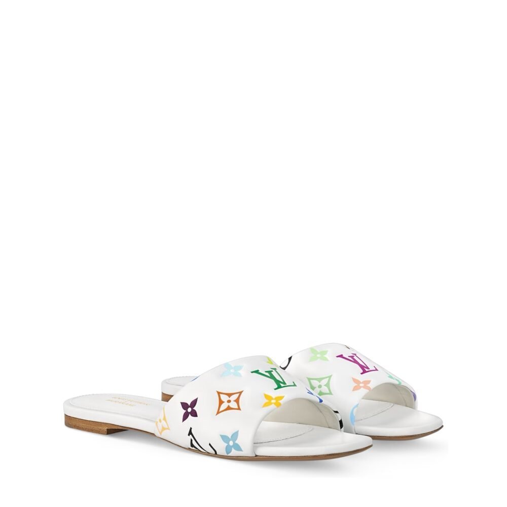 The 6AM flat sandal comes with a timeless classic design, a wide puffed loated leather front belt, and is easy to wear. This model is encommented with a multi-color Monogram, the design of which is inspired by the Louis Vuitton x Murakami collection, which updates the iconic signature of the house and blends it with the popular color range of Japanese artist Takashi Murakami. The magic of this design is completed by a luxurious leather outsole.