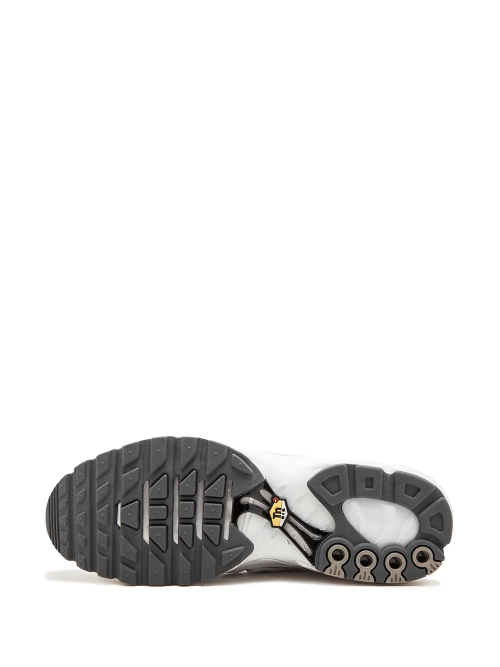 The Nike Air Max Plus Triple White undulates with style as it provides visible cushioning, support, and traction.