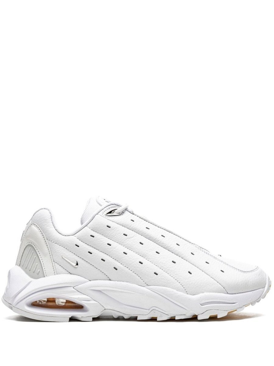 First teased in Drake’s “Laugh Now Cry Later” music video, the Nike Hot Step Air Terra Drake NOCTA White is crafted with white perforated tumbled leather similar to that of Air Jordan 14. Metallic mini Swoosh emblems at the toe and heel pop against a clean background. In addition to Air Max cushioning, G-TEK is also present in the sole, a technology found in the 1999 ACG Air Terra Humara. Subtle NOCTA branding moments on the tongue and insole nod to Drake’s Nike sublabel.