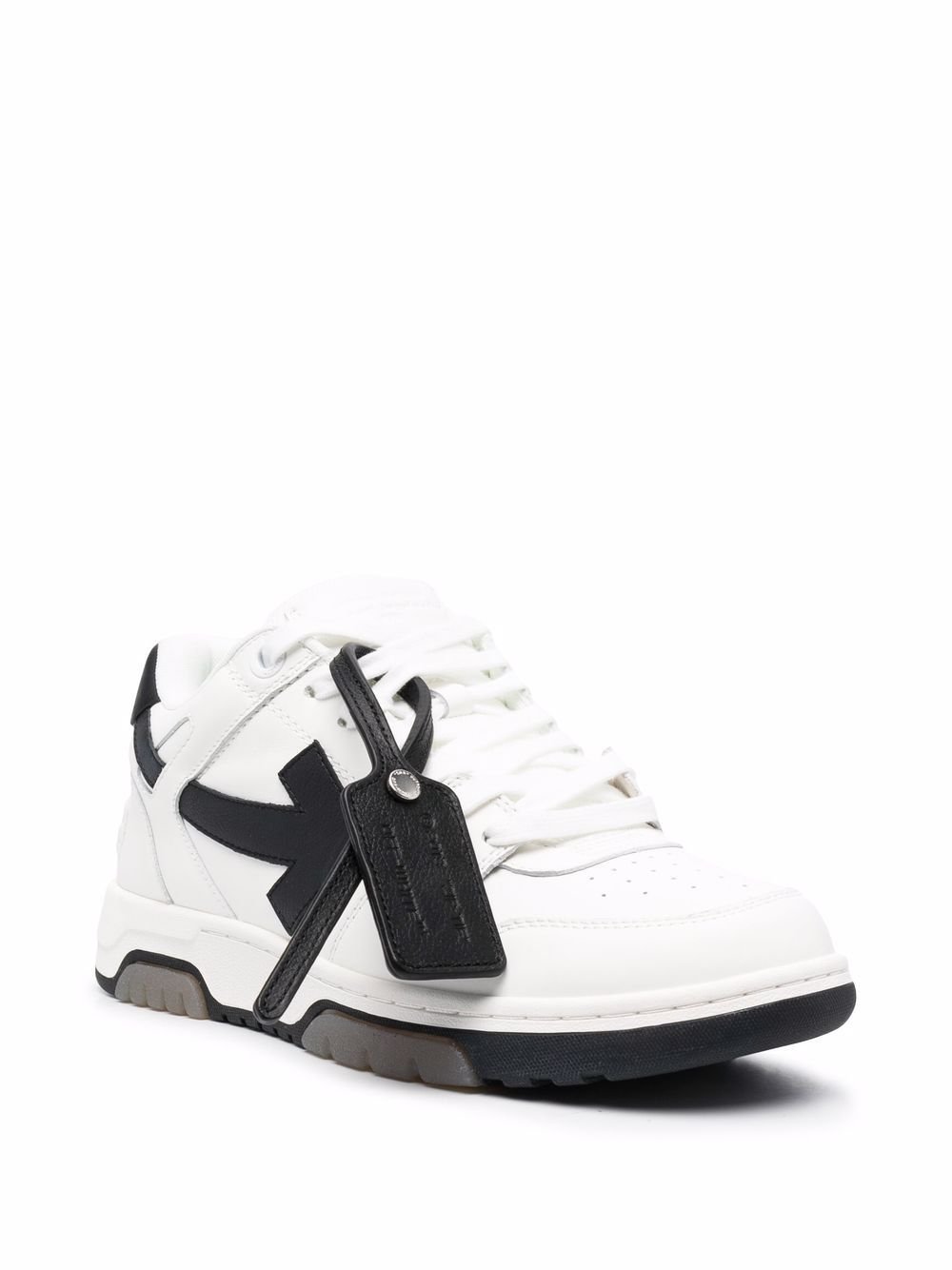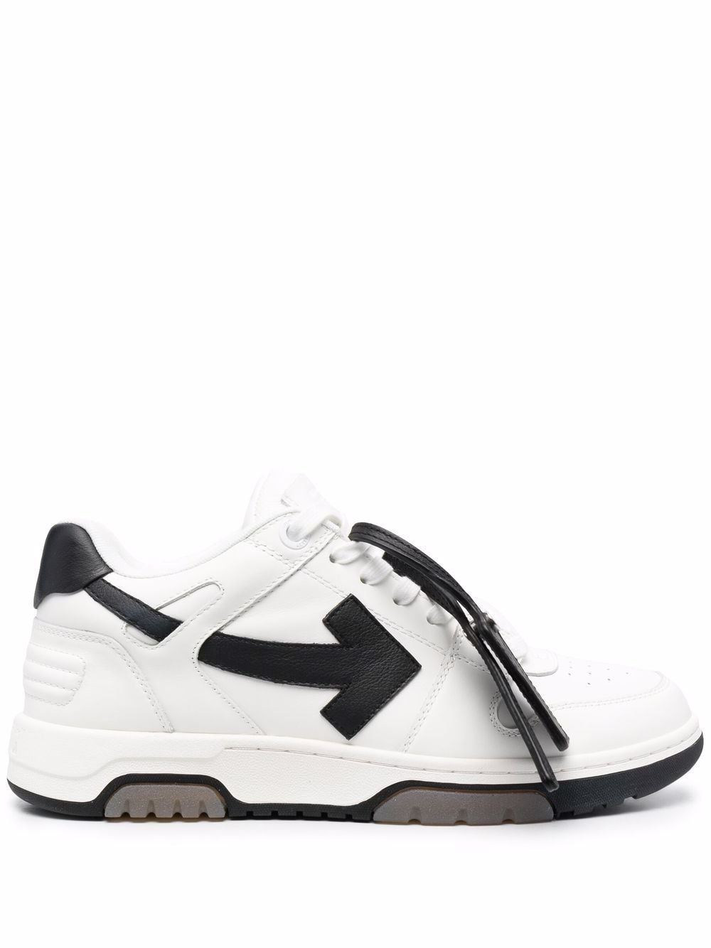 Off-White’s Out of Office sneakers merge streetwear, basketball, and running influences in a single design. Coupled with a suggesting name, the pair aims ‘to empower the public to escape the mundane and to create their own world of infinite possibilities. Crafted from leather, this iteration comes in a white and black colourway.